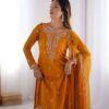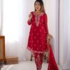 Women’s Georgette Embroidery Straight Kurti with Pant And Dupatta Set